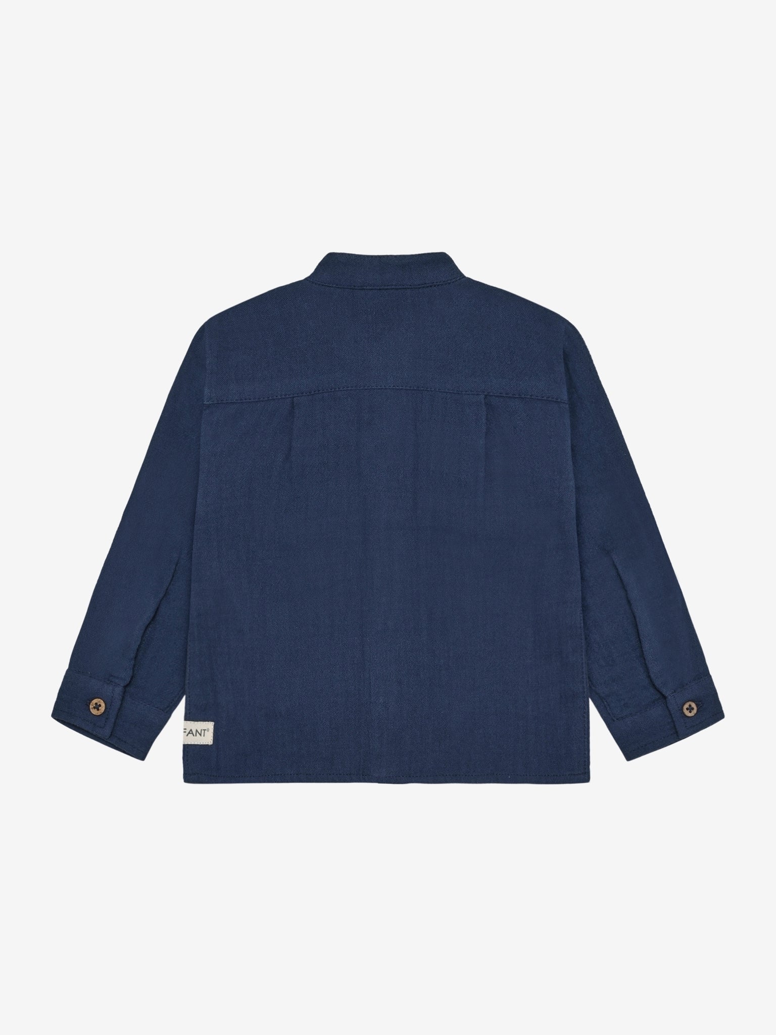Dieses Hemd kann vorne und an den Manschetten mit Knöpfen geöffnet werden.