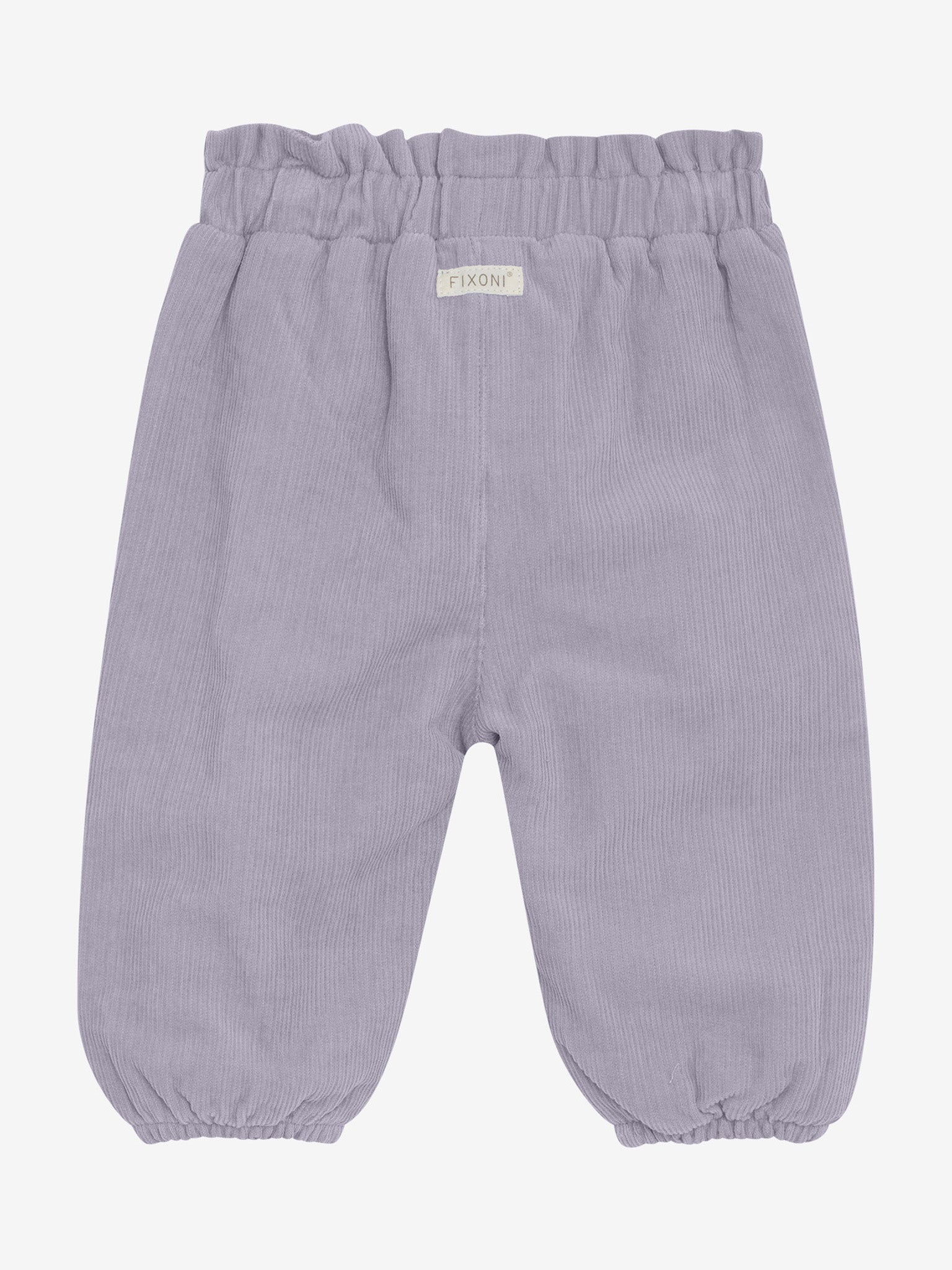 Unifarbene Cordhose von FIXONI. Diese Hose hat einen breiten Gummizug in der Taille, ist sehr bequem und hält noch dazu herrlich warm.