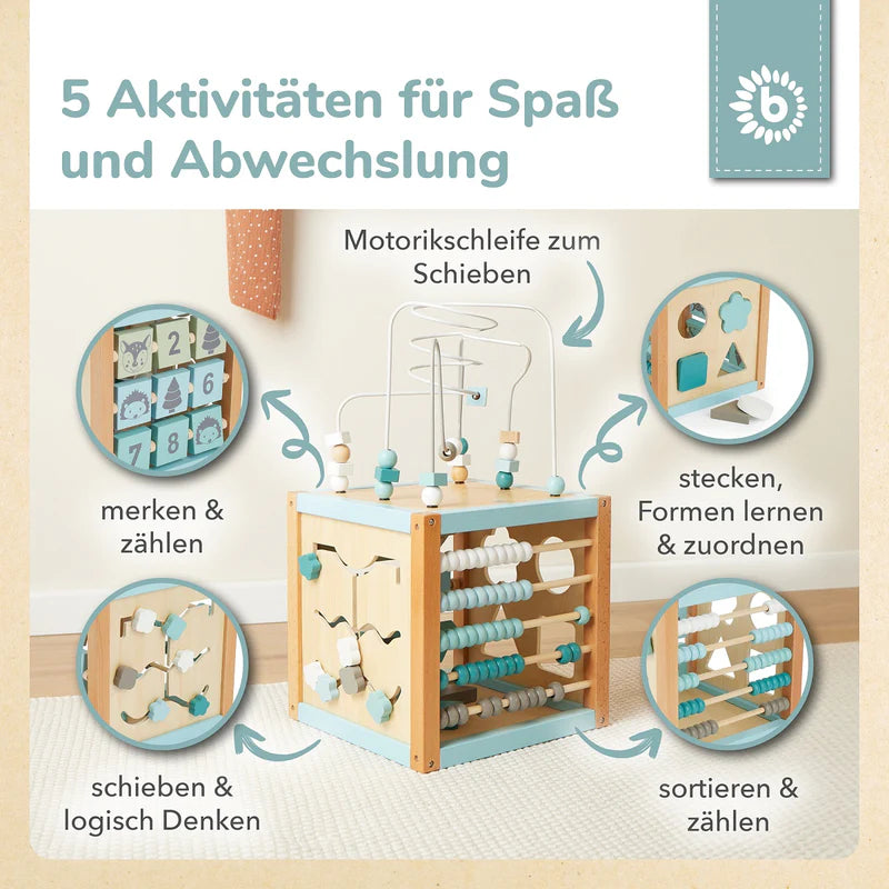 Spielspaß garantiert: Der große Motorikwürfel aus hochwertigem Holz von Bieco bietet abwechslungsreiche Beschäftigungsmöglichkeiten für Dein Baby.