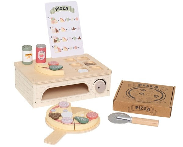Es ist Pizza-Zeit! Dieser Pizza-Ofen ist das beste Spielzeug für kleine Pizzabäcker. Mit den vielen Zutaten kannst du deine ganz eigene Lieblingspizza zusammenstellen und dann in den Ofen schieben. Die Toppings werden einfach mit Klett auf der Pizza befestigt. Serviere deine Pizza mit den besten Zutaten, so wie es dir gefällt oder nimm die beiliegende Menükarte und befolge das Rezept. Mit diesem realistischen Design sind viele Stunden Spielspaß garantiert, das zu kreativem Spiel einlädt, verschiedene Geschmackskombinationen auszuprobieren und Essen zuzubereiten.