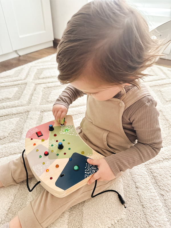 Das Montessori-Motorikbrett fördert mit leuchtenden Farben und Schaltern die Feinmotorik, Hand-Augen-Koordination, Farberkennung sowie die sensorische und kognitive Entwicklung von Kleinkindern Ergonomische Formgebung mit 8 Schaltern und 21 LEDs für stundenlange, bildschirmfreie Unterhaltung Mit Schlüssel, 2 Drehschaltern, einem Druckknopf, Kabel mit DC Stecker, 2 Kippschaltern und einem Schiebekopf für spannende Interaktionen...