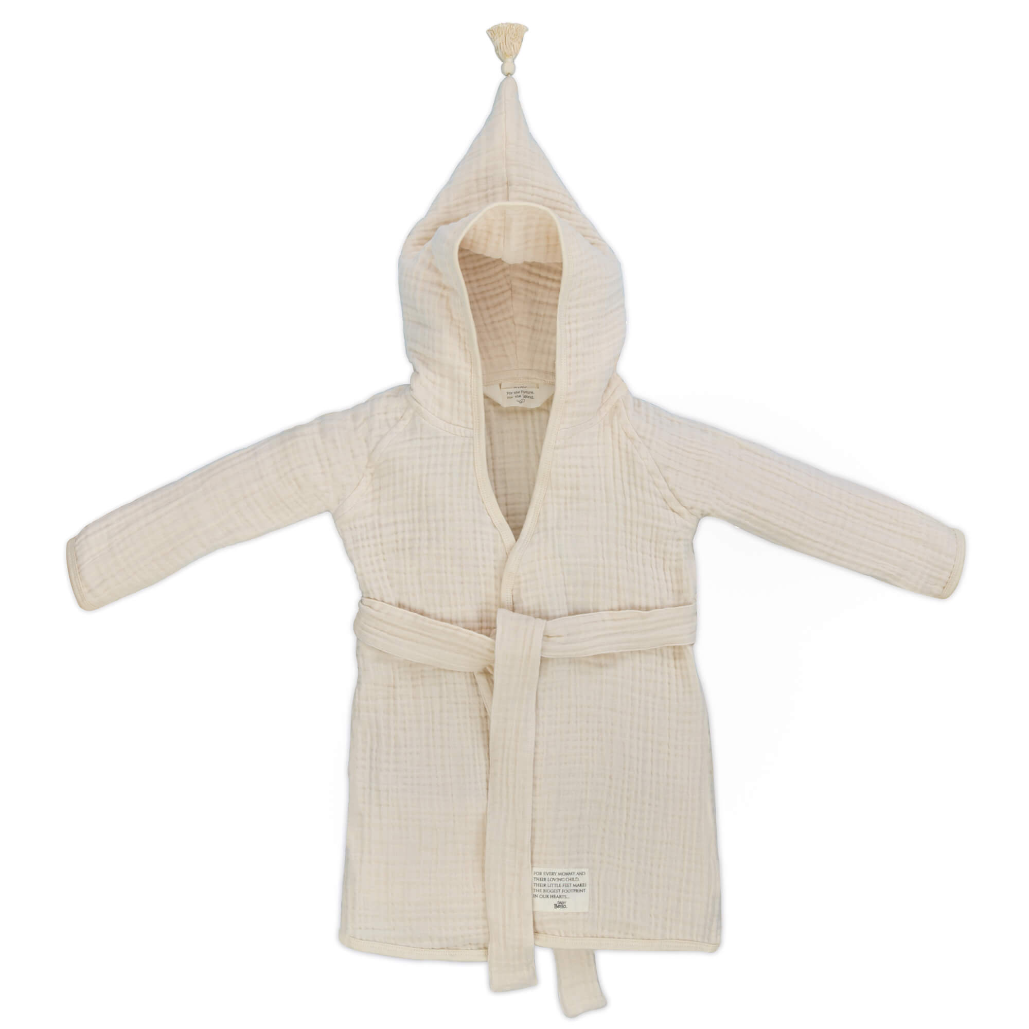 „Die Bademäntel von Baby Bello sind in sanften Erdfarben gestaltet und aus 100 % Bio-Baumwolle hergestellt. Dieser feine Bademantel ist superweich und hält Ihr Baby schön warm. Inklusive süßer Quaste. Sehr praktisch nach dem Baden oder am Strand.“